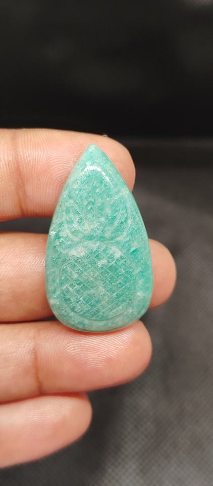 พลอยอะเมโซไนต์สีเขียวธรรมชาติทรงหลังเบี้ย ขนาดผสม สำหรับทำเครื่องประดับ ยูดีจีมส์ รุ่น 474