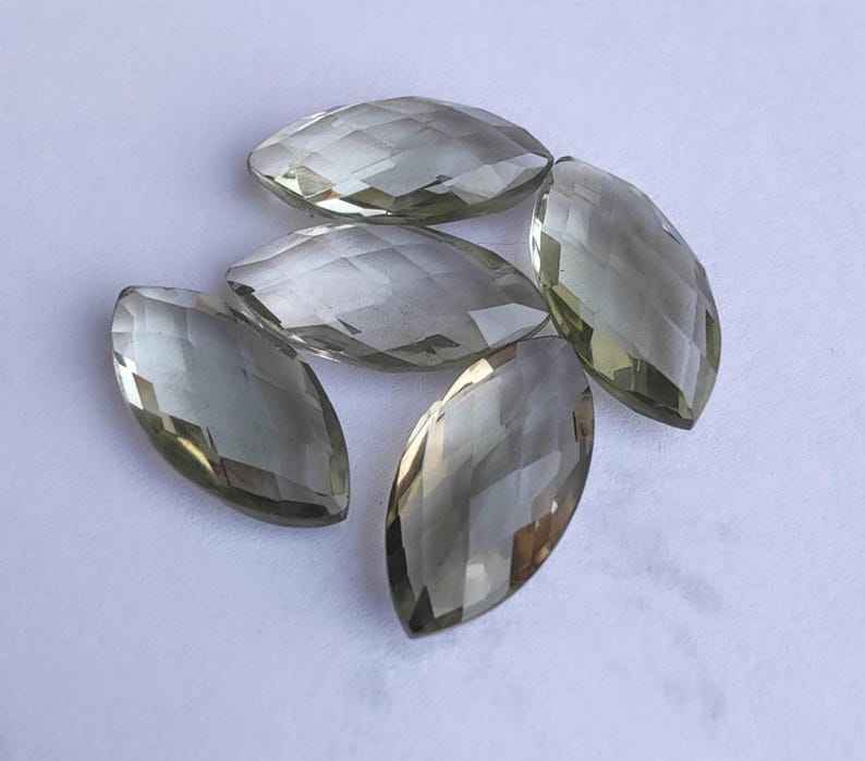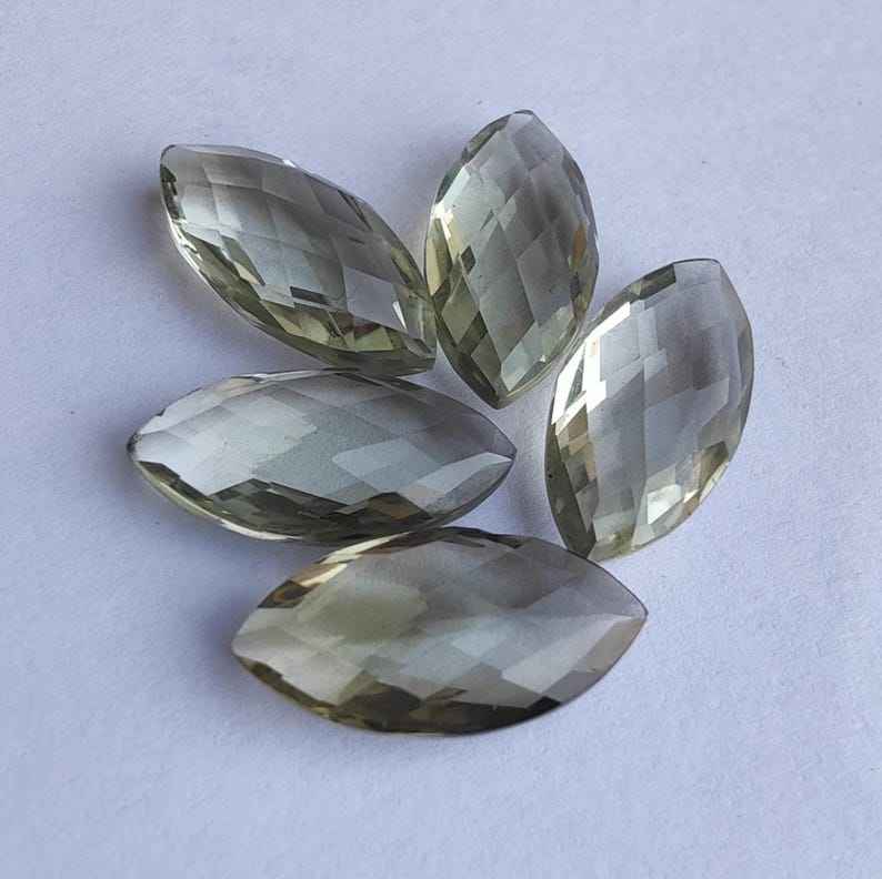 พลอยอะเมทิสต์สีเขียวธรรมชาติทรงมาร์ควิส บริโอเลต คัตเชอร์คัท ขนาดเท่ากัน สำหรับทำเครื่องประดับ