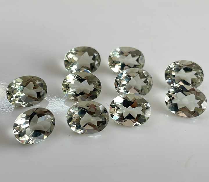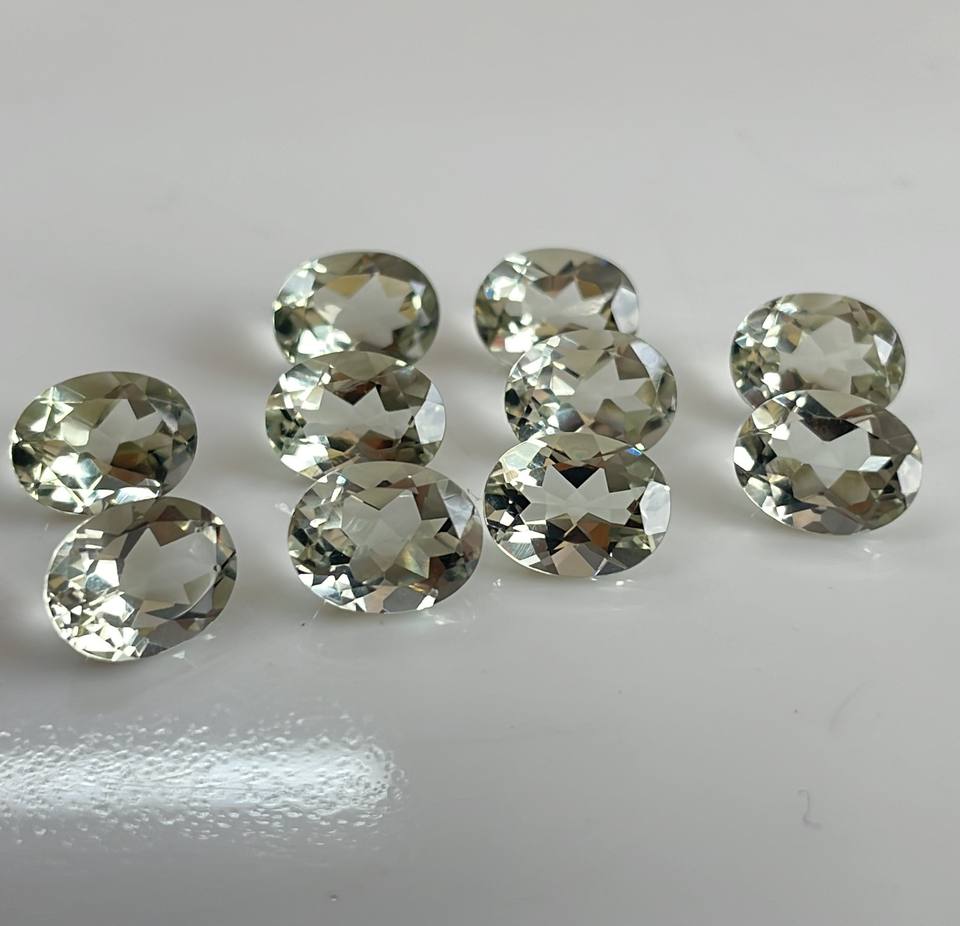 พลอยอเมทิสต์สีเขียวธรรมชาติรูปวงรีตัดขนาด6x8มม. สีม่วงอมเขียวหลวม