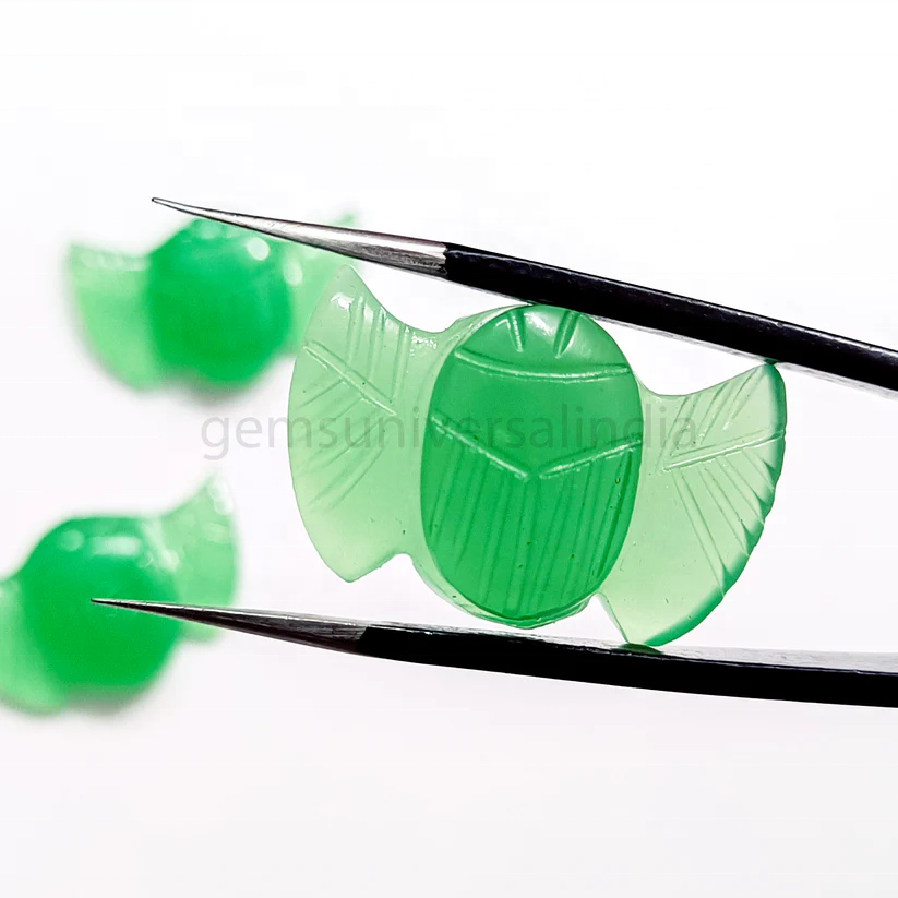 แมลงปีกแข็งคาลซิโดนีสีเขียวธรรมชาติสลักด้วยมือสไตล์โบฮีเมียนอียิปต์พร้อมลูกปัดปีกสำหรับทำเครื่องประดับทำแมลงปีกแข็งพีไรต์เสน่ห์จำนวนมาก