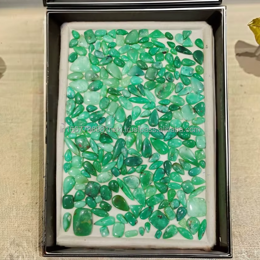 จี้คริสโซเพรสสีเขียวธรรมชาติทรงคาโบชอง สร้อยคอรูปทรงผสมผสาน เครื่องประดับชุบเงิน ชุดเครื่องประดับเสน่ห์อันน่าหลงใหล