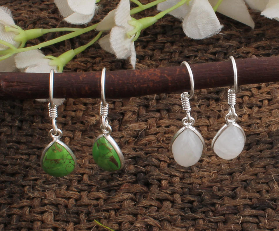 ต่างหูห้อยทรงหยดน้ำทำมือจากเงินแท้ 925 ประดับด้วยมูนสโตนสีรุ้งทองแดงเขียวธรรมชาติ สไตล์วินเทจสุดหรู เหมาะเป็นของขวัญวันครบรอบแต่งงาน