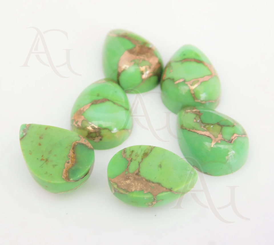 ลูกแพร์สีเขียวทองแดงเทอร์ควอยซ์ธรรมชาติหินมีค่าเรียบอัญมณีหลวมสำหรับทำเครื่องประดับ