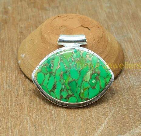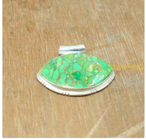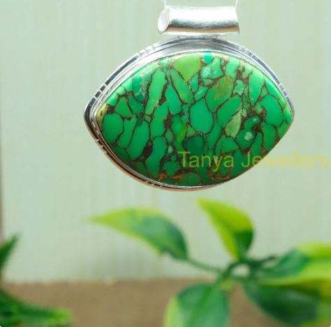 Natural Green Copper Turquoise Pendant Green Stone Pendant 925 Sterling Silver Handmade Statement Large Stone Gift Jewelry