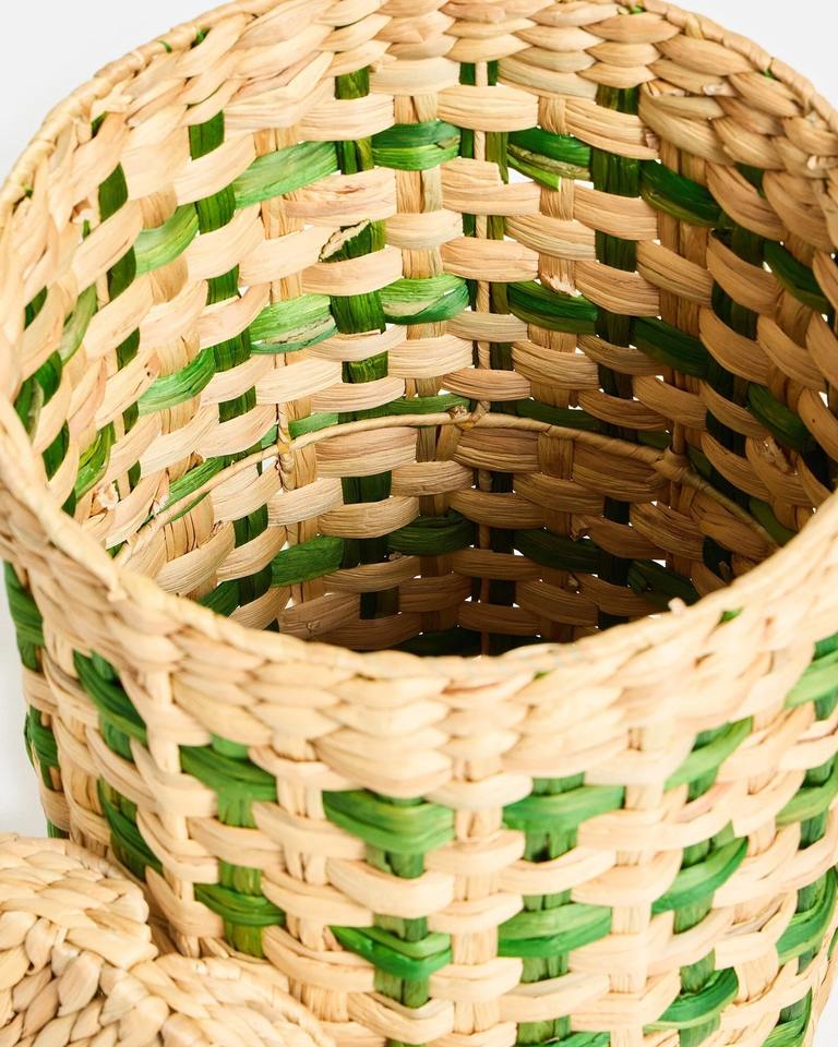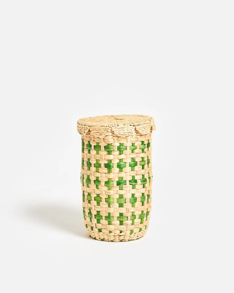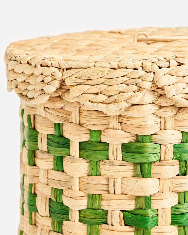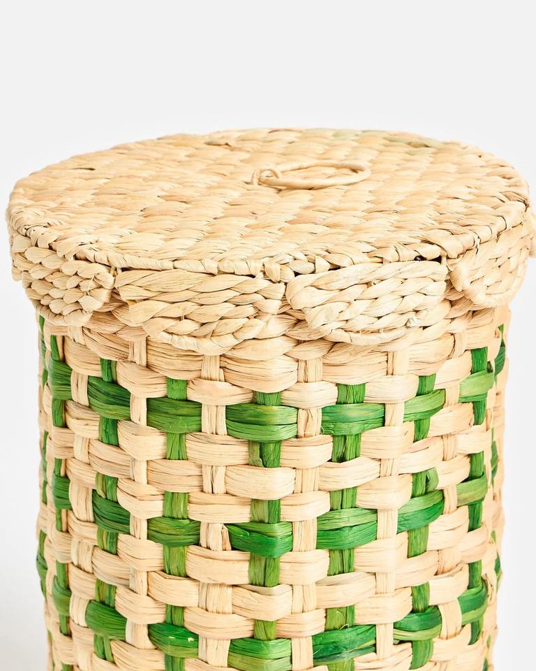 ตะกร้าใส่ผ้าสานไขว้สีเขียวธรรมชาติ