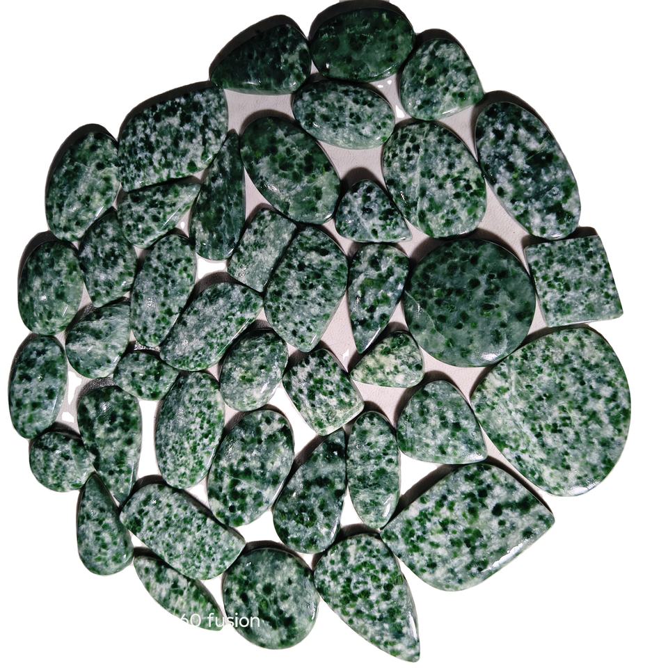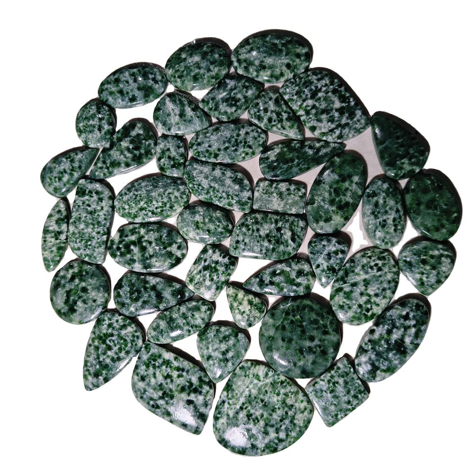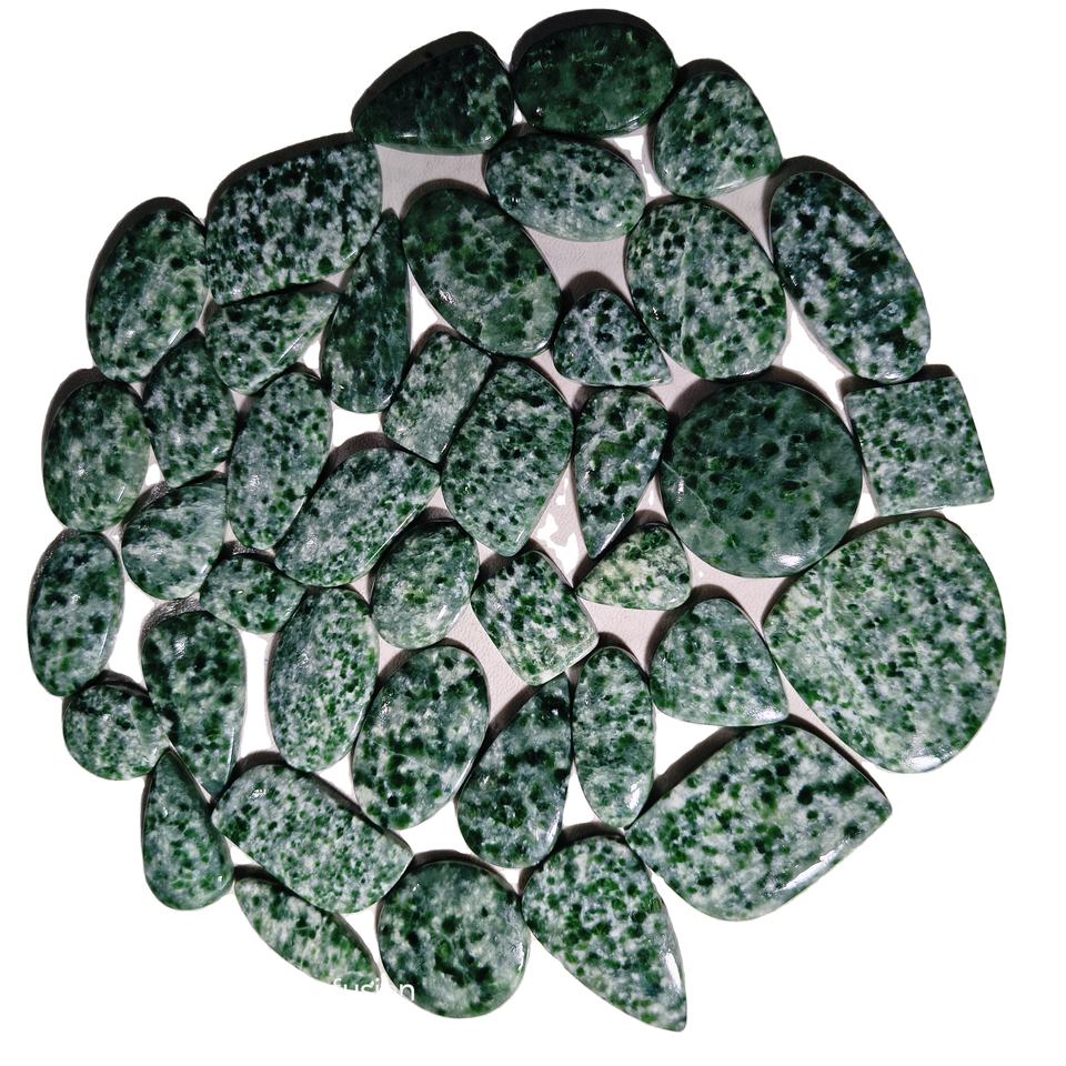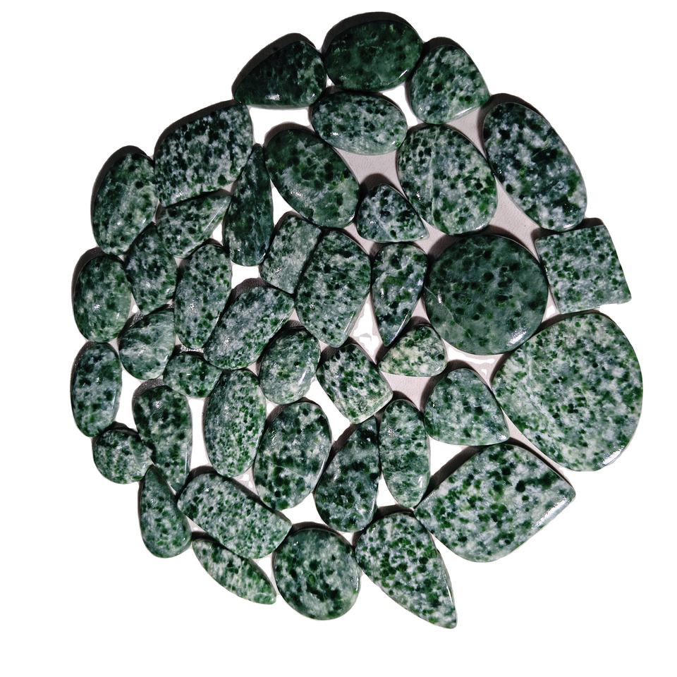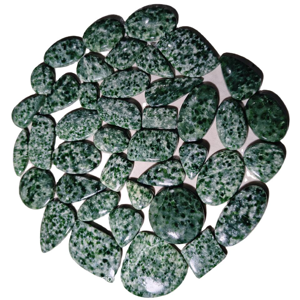 พลอยแจสเปอร์จุดเขียวธรรมชาติทรงหลังเบี้ย ขนาด 20-45 มม. สำหรับทำเครื่องประดับ บำบัดเรกิ ช่วยปรับสมดุลจักระ