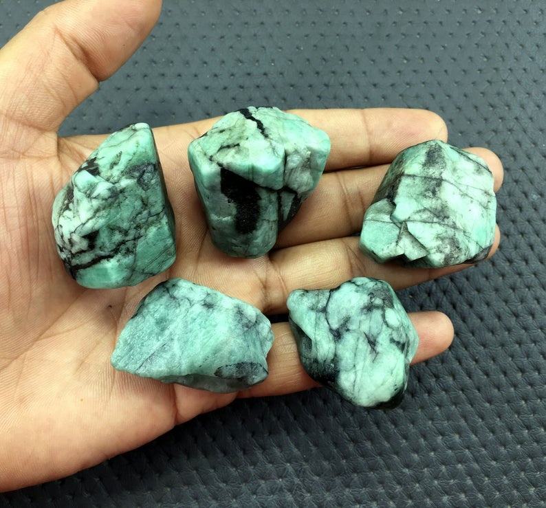 หินคริสตัลสีเขียวมรกตธรรมชาติพลอยหลวมหินหยาบของคอลเลกชันหิน Panna คุณภาพสูงสุดที่ประสบความสำเร็จขายส่ง