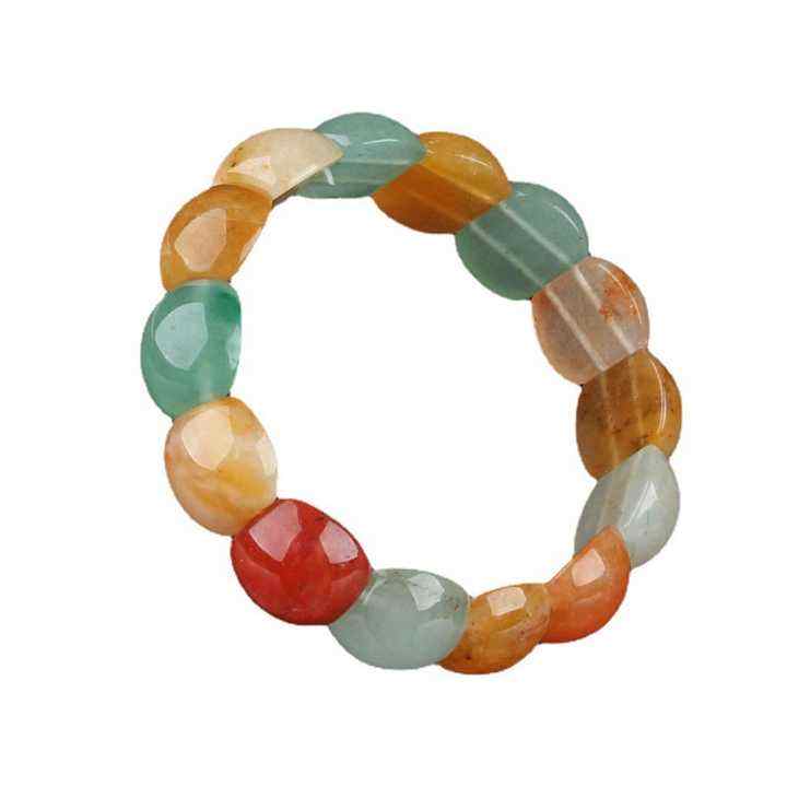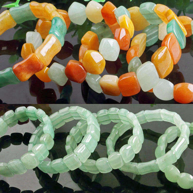 กำไลหยกเขียวธรรมชาติร้อยลูกปัดเชือกยางยืดหลากสี กำไลหยกทรงสูงแบบไม้ไผ่สำหรับผู้หญิง เครื่องประดับคุณภาพสูง ขายส่ง