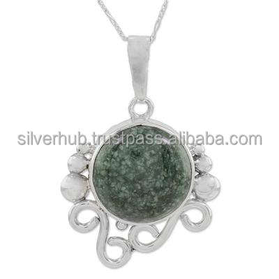 Natural Green Jade Gemstone Vintage Pendant Handmade 925 Solid Sterling Silver Designersemiprecious Fine Jewellery Pendant