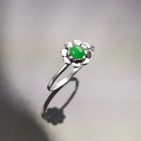 แหวนหยกเขียวธรรมชาติ เงินแท้ ดีไซน์ดอกไม้กลมเล็กๆ แหวนลายดอกไม้ธรรมชาติ เครื่องประดับสำหรับใช้ในชีวิตประจำวัน ของขวัญสำหรับผู้หญิง