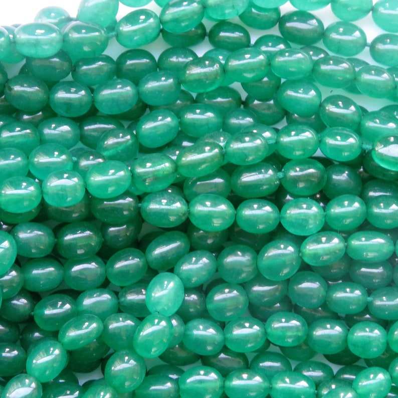 ลูกปัดหยกเขียวธรรมชาติทรงรีเรียบเนียน ลูกปัดพลอยสำหรับทำเครื่องประดับ ร้อยเป็นเส้น หินหลวมคุณภาพสูง
