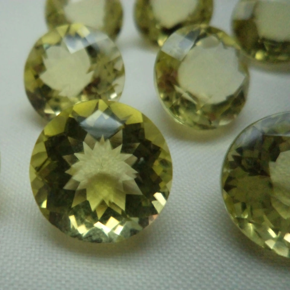 หินเลมอนควอทซ์ธรรมชาติสีเขียวแบบเหลี่ยมตัดเป็นวงแหวนสำหรับใช้เป็นเครื่องประดับ