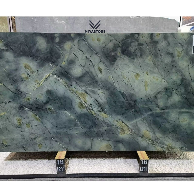 แผ่นควอตซ์ไซต์หรูหราสีเขียวธรรมชาติแผ่นหินควอตซ์หรูหราสีเขียวสำหรับท็อปเคาน์เตอร์และโต๊ะเครื่องแป้ง