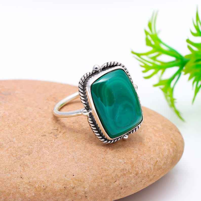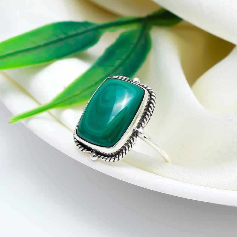 แหวนพลอยมรกตสีเขียวธรรมชาติทำด้วยมือเครื่องประดับหรูหราแหวนหินสีเขียวที่ไม่ซ้ำกันของขวัญสำหรับผู้หญิงเครื่องประดับแฟชั่นสำหรับผู้หญิงสำหรับเธอ