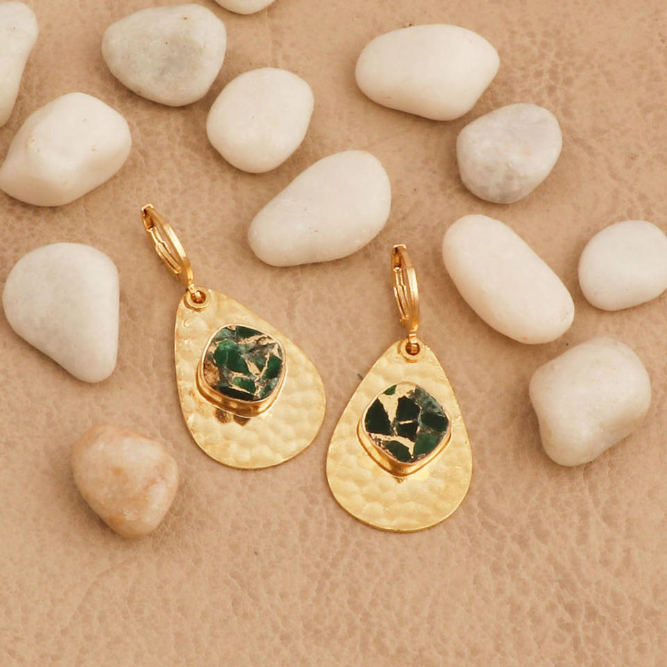 ต่างหูพลอยโมฮาต์สีเขียวธรรมชาติต่างหูแบบห้อยชุบทองทำด้วยมือเครื่องประดับดีไซเนอร์