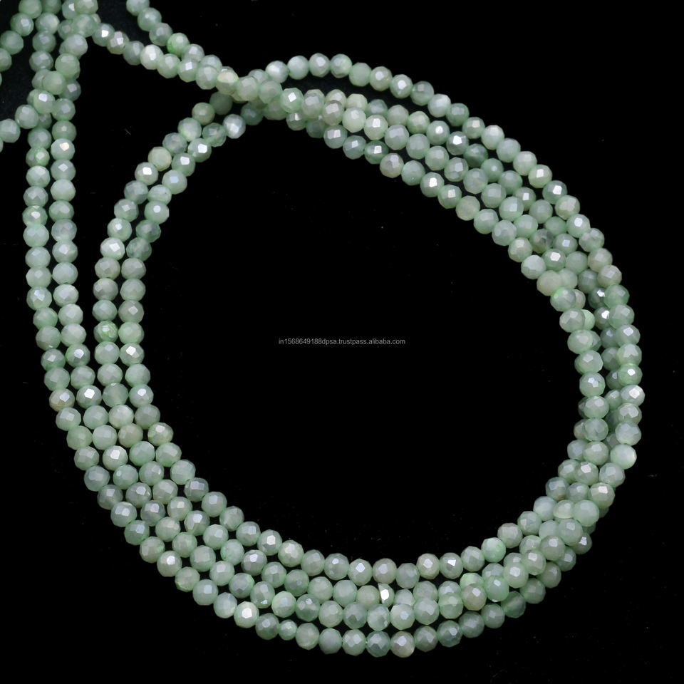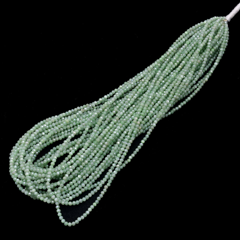 ลูกปัดมูนสโตนสีเขียวธรรมชาติทรงเหลี่ยมเจียระไนทำมือ ขนาด 2.5-3 มม. ความยาว 16 นิ้ว คุณภาพพรีเมียม เกรดสาม