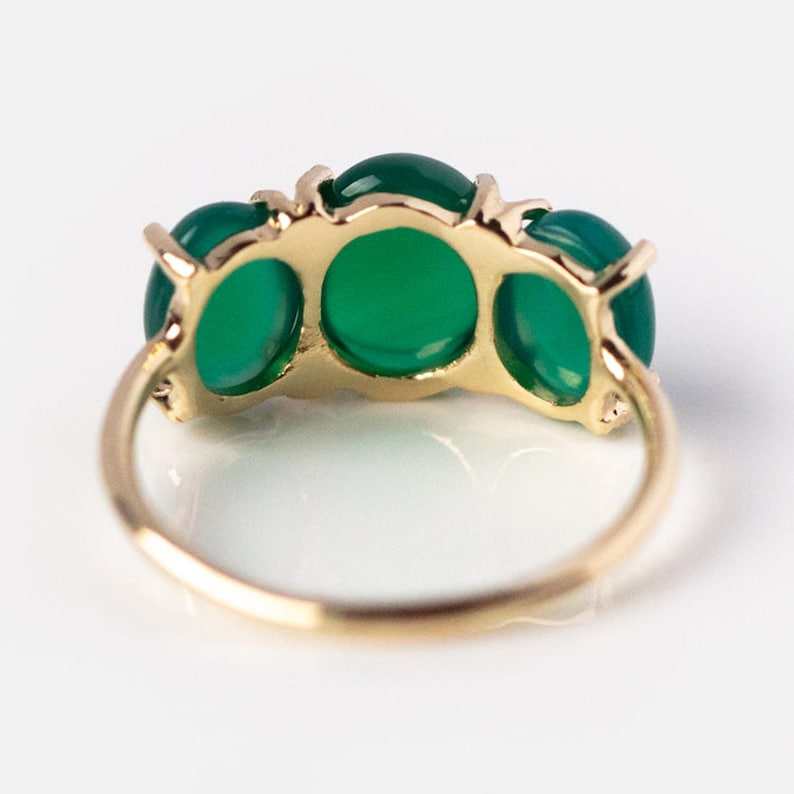 แหวนหมั้นทองคำแท้ 14K ประดับพลอยออนิกซ์สีเขียวธรรมชาติ ดีไซน์อาร์ตเดโค ทรงกลุ่ม พร้อมคาโบชอง ของขวัญครบรอบสุดหรูหราคลาสสิก