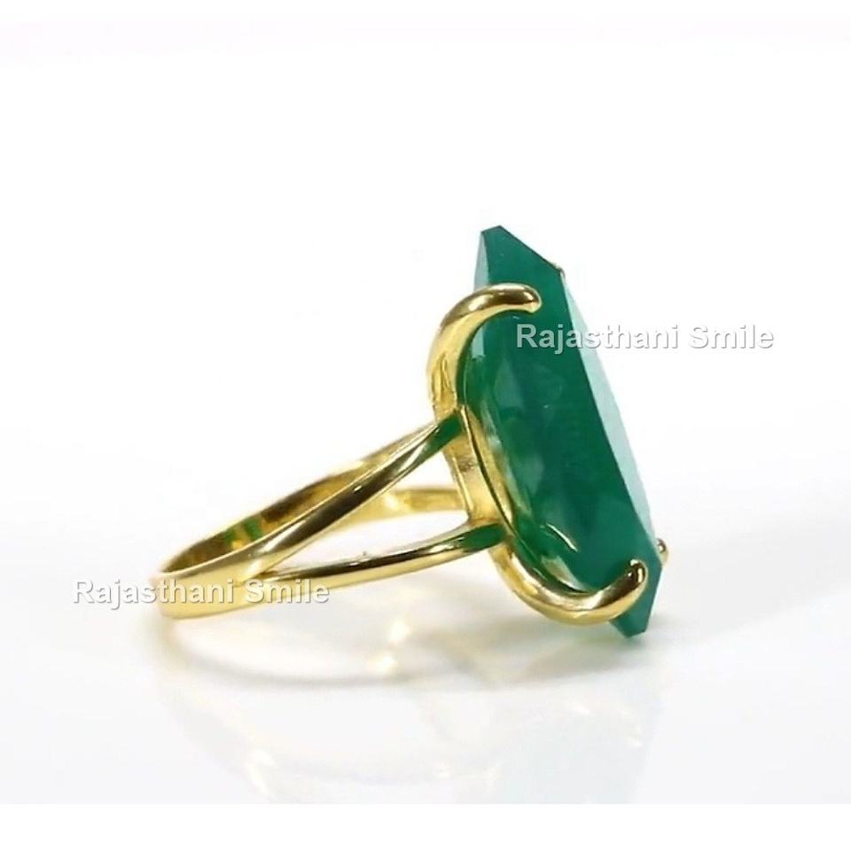 แหวนค็อกเทลโซลิแทร์พลอยสีเขียวธรรมชาติชุบทอง14K ชุบ925เงินสเตอร์ลิงประดับอัญมณีขนาด12X22มม.