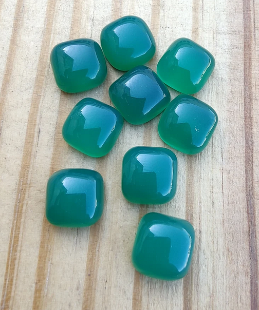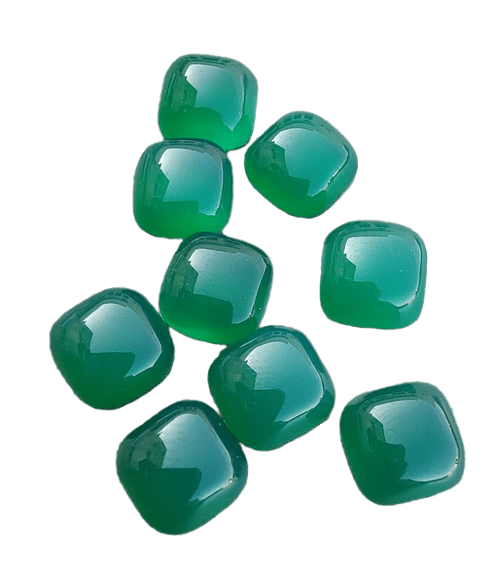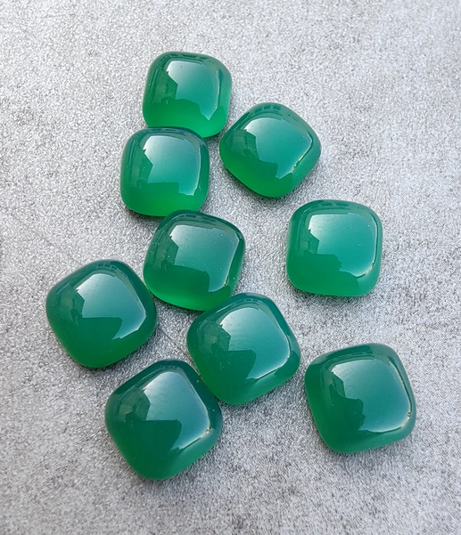พลอยออนิกซ์สีเขียวธรรมชาติทรงหมอนแบบหลังแบนสำหรับทำเครื่องประดับแหวนสำหรับผู้ชายผู้หญิง สร้อยข้อมือประจำเดือนพฤษภาคม