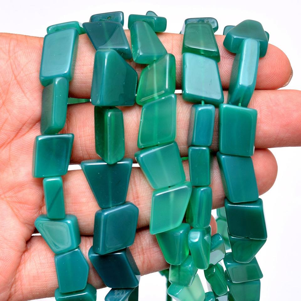 พลอยโอนิกซ์สีเขียวธรรมชาติลูกปัด12มม.-15มม. สีเขียวโอนิกซ์พลอยสังเคราะห์หายากลูกปัดเรียบสำหรับทำเครื่องประดับ