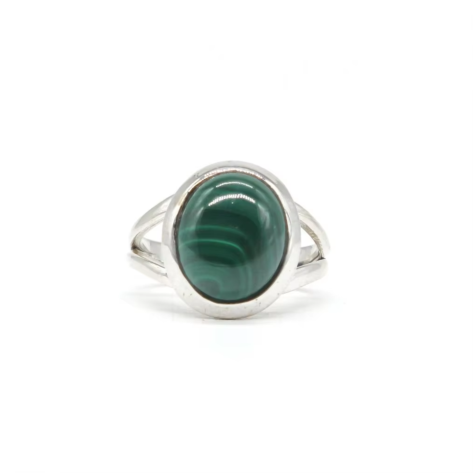 แหวนพลอยออนิกซ์สีเขียวธรรมชาติ แหวนเงินแท้ 925 ทำมือ งานฝีมือประณีต ดีไซน์คลาสสิกประดับด้วยมาลาไคต์ เหมาะสำหรับผู้หญิง เป็นของขวัญวันครบรอบ