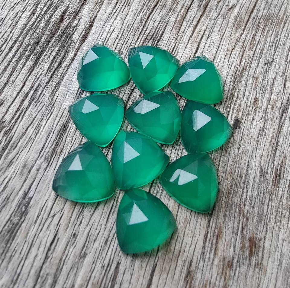 พลอยนิลสีเขียวธรรมชาติสีเขียวแบบหลวมทรงล้านล้านสำหรับตรวจสอบการตัดทรงหลังแบนปรับขนาดให้มีทุกขนาด