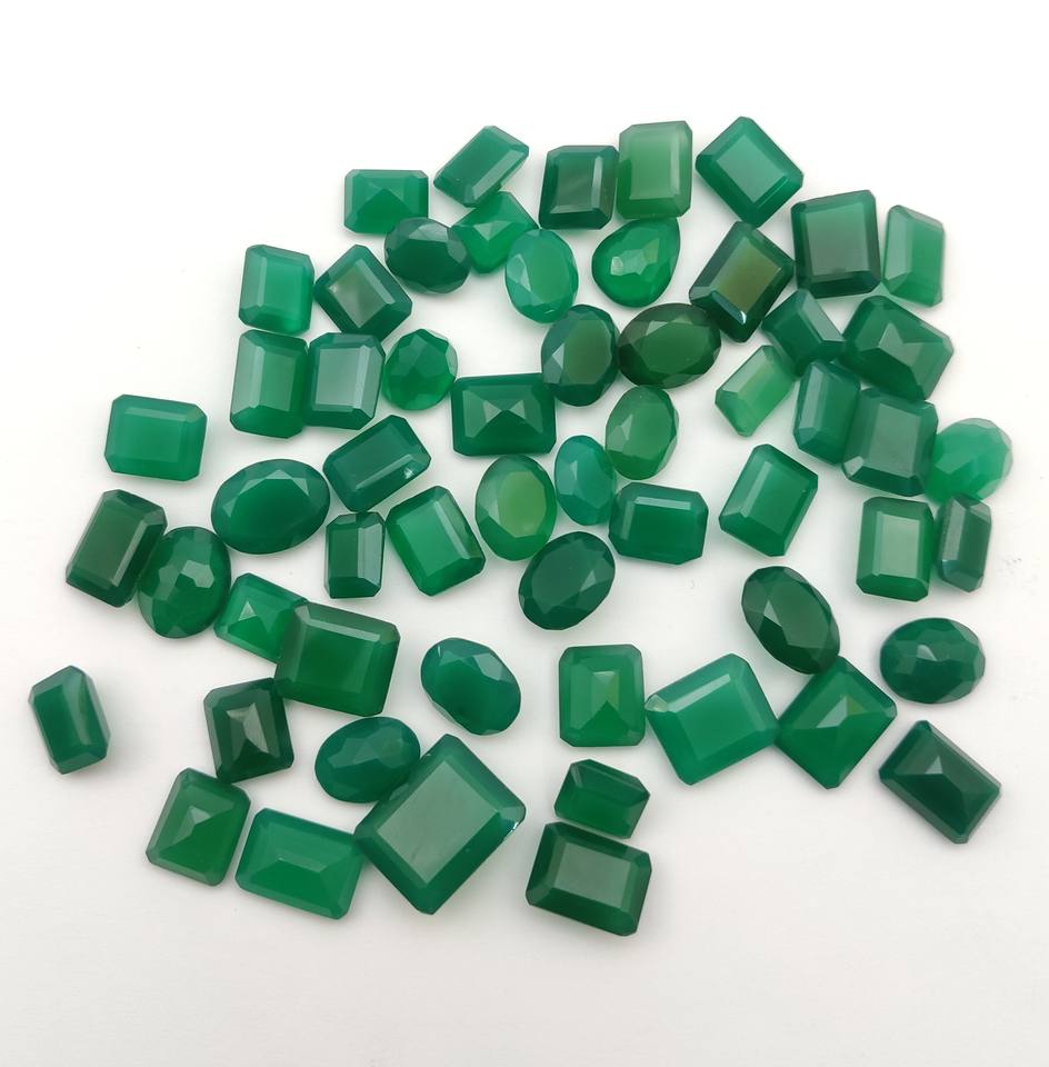 พลอยโอนิกซ์สีเขียวธรรมชาติตัดเป็นจำนวนมากทำเครื่องประดับหินคุณภาพสูงหินสีเขียว