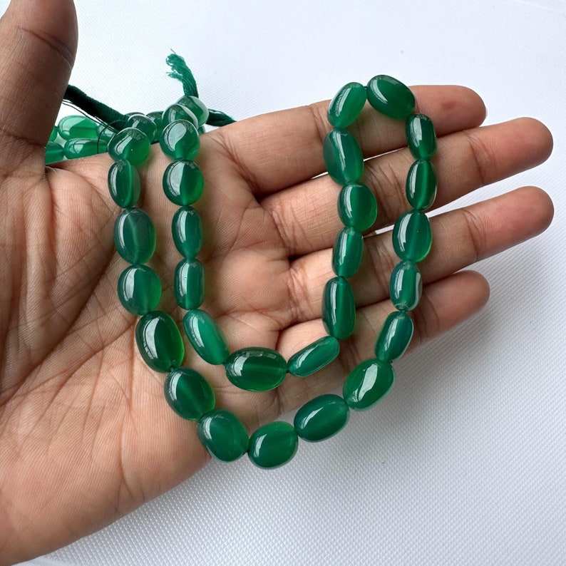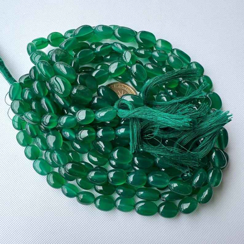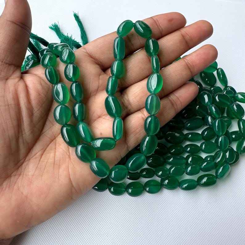 ลูกปัดหินออนิกซ์สีเขียวธรรมชาติรูปไข่ผิวเรียบสำหรับทำเครื่องประดับ คุณภาพสูง