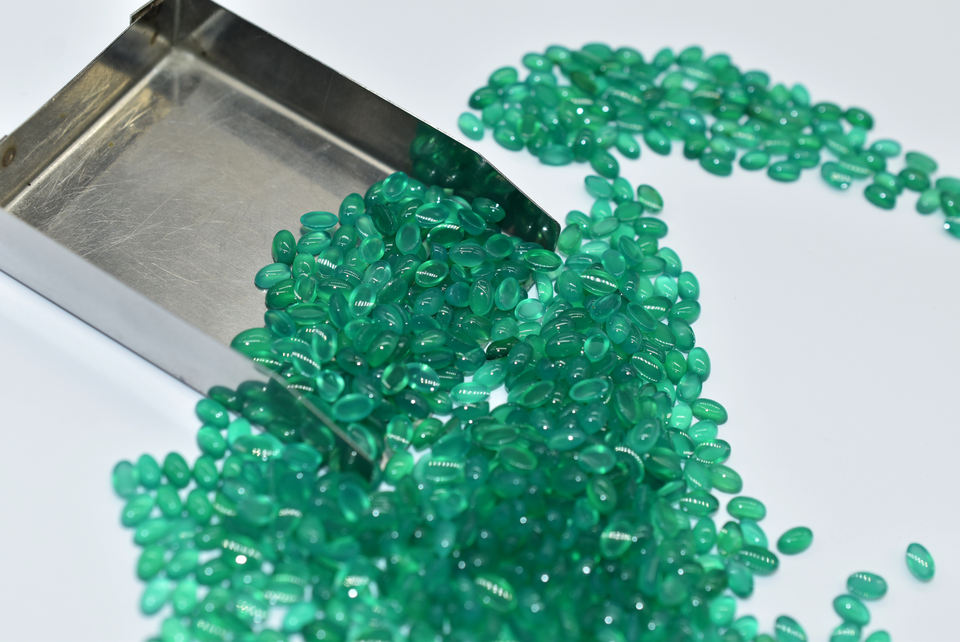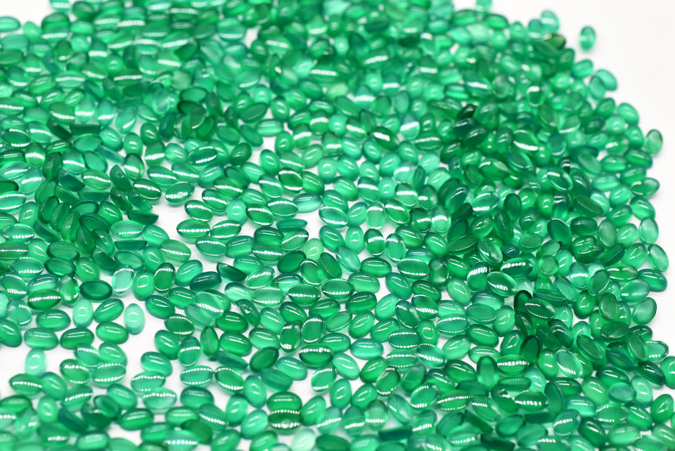 หินอัญมณี Cabochon ปรับเทียบได้อย่างราบรื่นสำหรับการทำเครื่องประดับหินโมราธรรมชาติสีเขียว Ovals Cabochons 3X5มม. ขนาดที่มีขนาดใหญ่ขึ้น