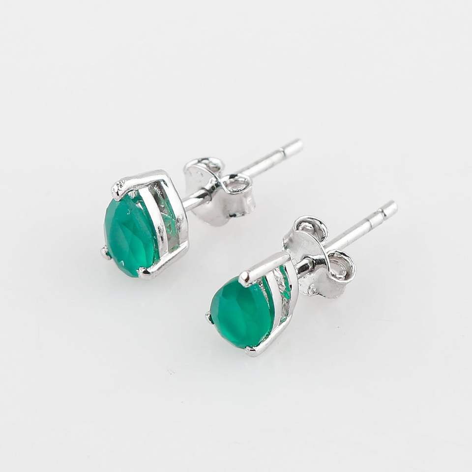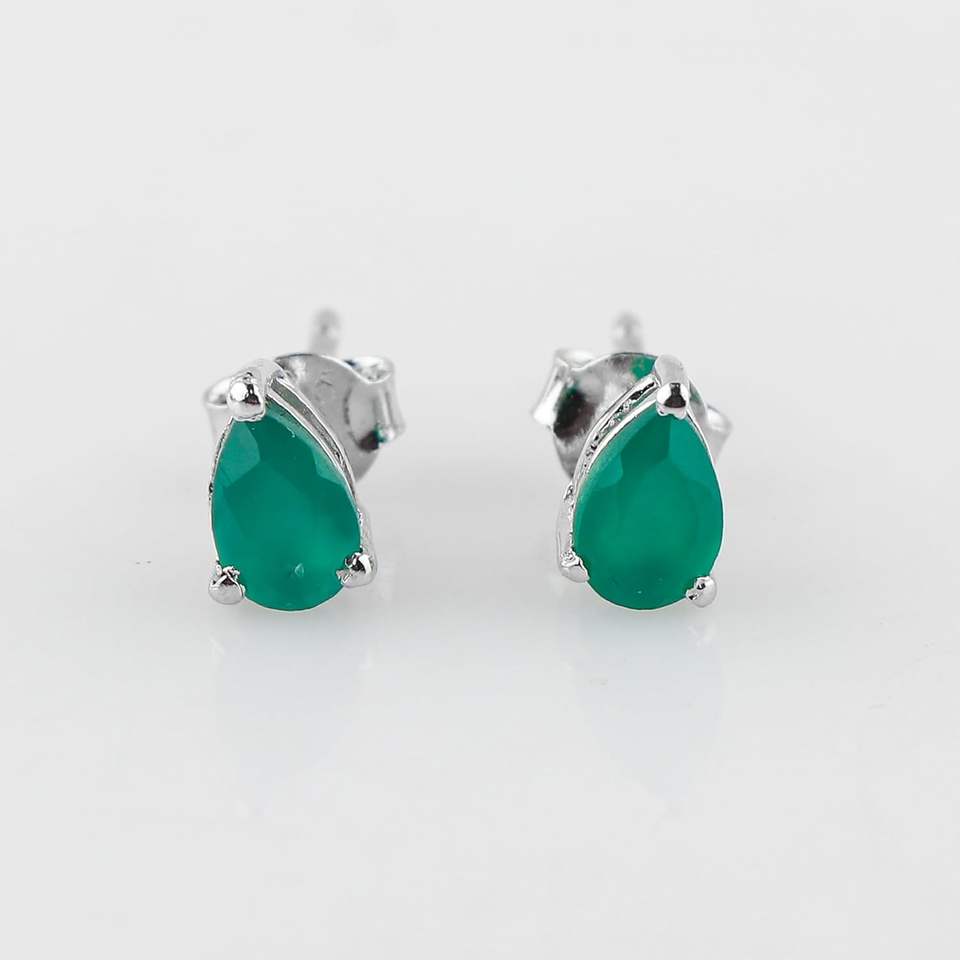 ต่างหูทรงลูกแพร์ทำจากพลอยออนิกซ์สีเขียวธรรมชาติ ตัวเรือนเงินแท้ ประดับด้วยพลอยช่วยบำบัดจักระ เหมาะสำหรับใส่ทุกวัน