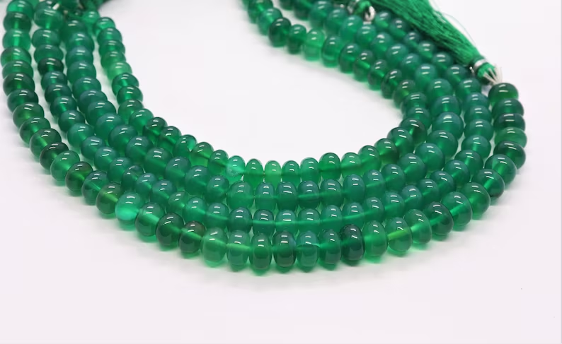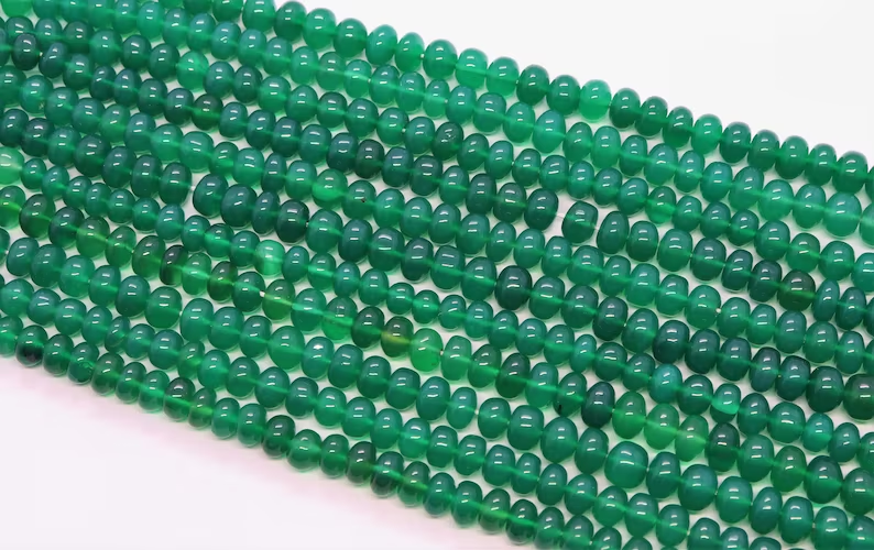 ลูกปัดสีเขียวโอนิกซ์เรียบ