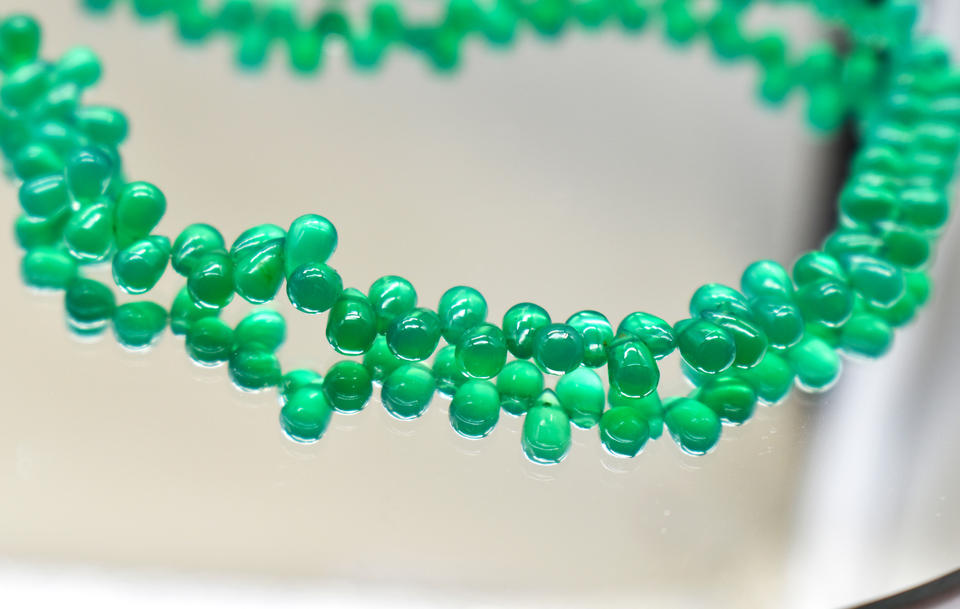 ลูกปัดรูปหยดน้ำสีเขียวโอนิกซ์
