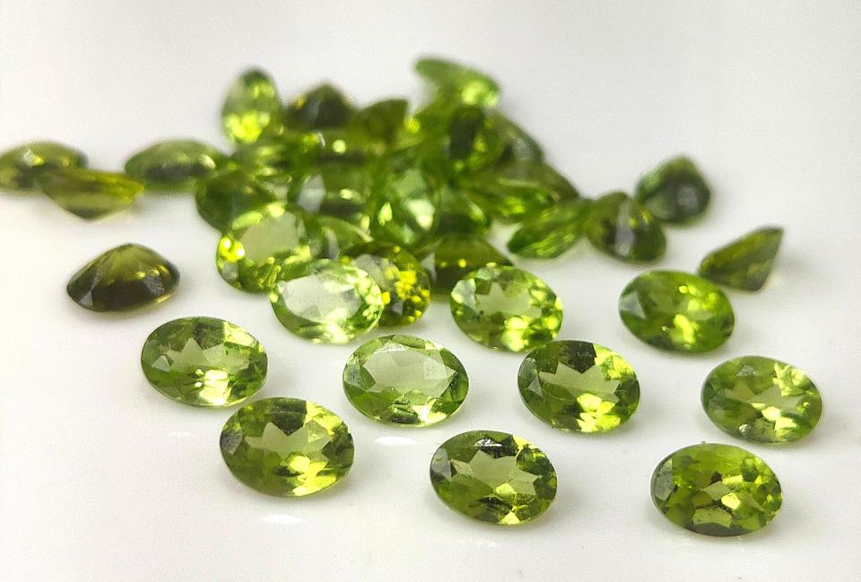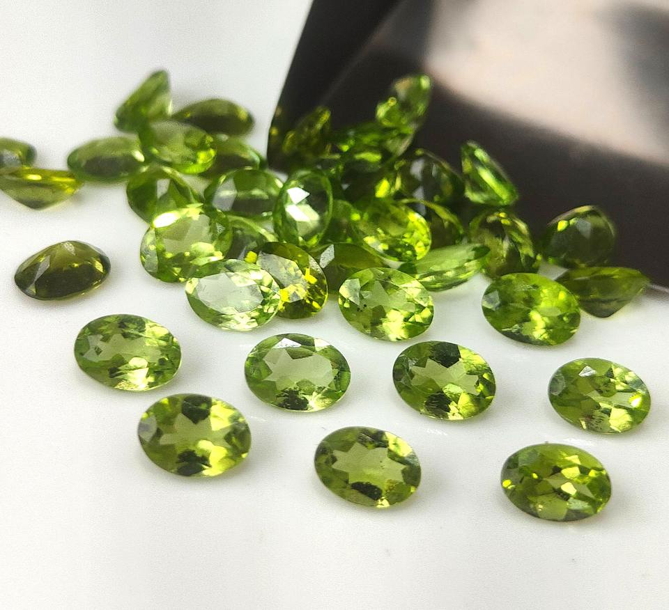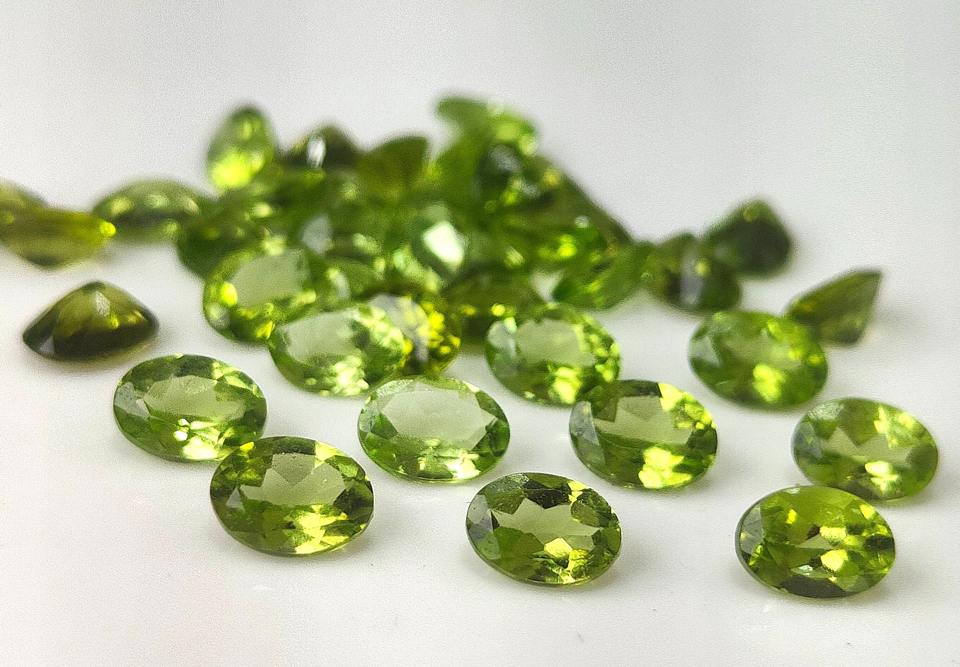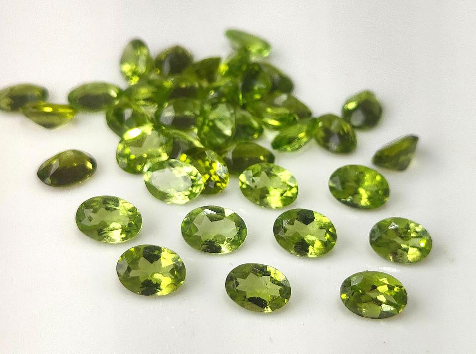 เพอริดอทดิบสีเขียวธรรมชาติ ขนาด 3x4 มม.-8x10 มม. รูปทรงวงรีเจียระไนแบบเหลี่ยมเพชรพลอย พร้อมสีเล่นแสง/สีไฟ สำหรับทำเครื่องประดับ