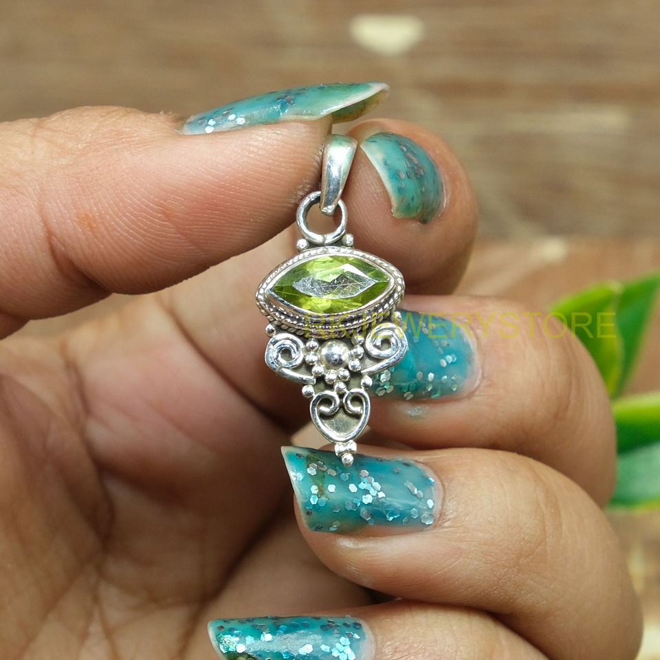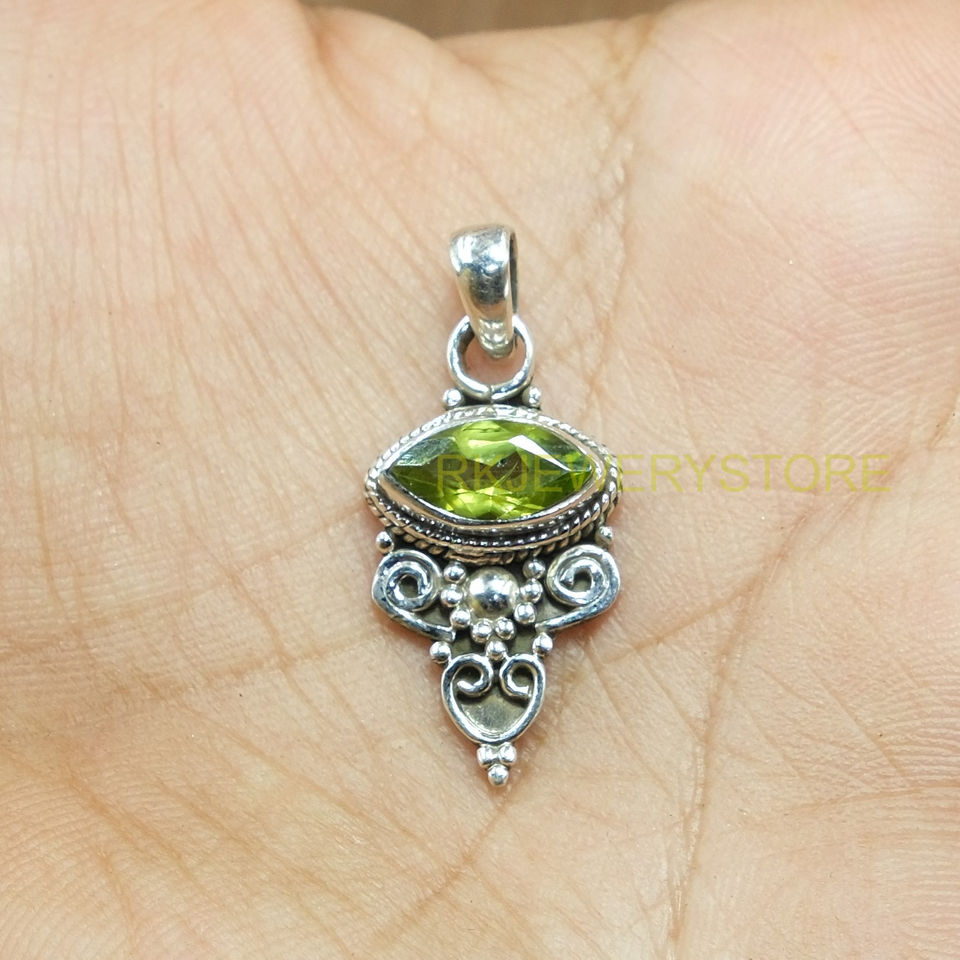 ชื่อหรือคำ:จี้เงินแท้ 925 ประดับเพอริดอทสีเขียวธรรมชาติ ทำด้วยมือ