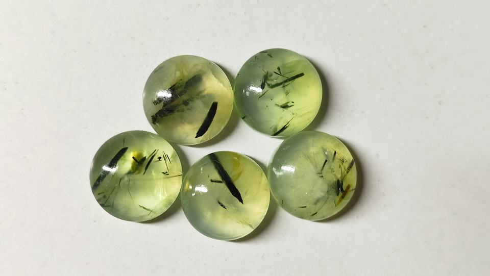 หินเพรไนต์ทรงมน8มม. สีเขียวธรรมชาติหิน prehnite เส้นสีดำหลวม Cabochon รูปร่างผสม prehnite