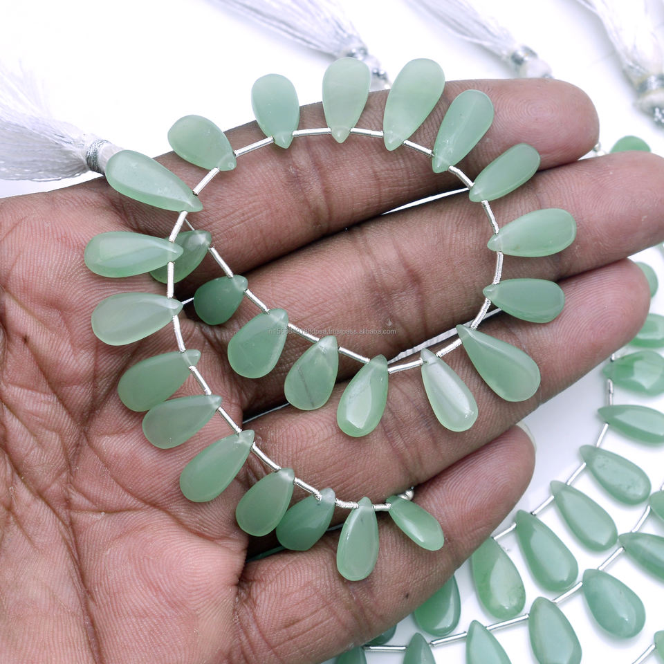 ลูกปัดควอตซ์สีเขียวธรรมชาติทรงหยดน้ำ เรียบเนียน คุณภาพพรีเมียม ทำด้วยมือ สำหรับทำเครื่องประดับ DIY สร้อยข้อมือ สร้อยคอ ต่างหู
