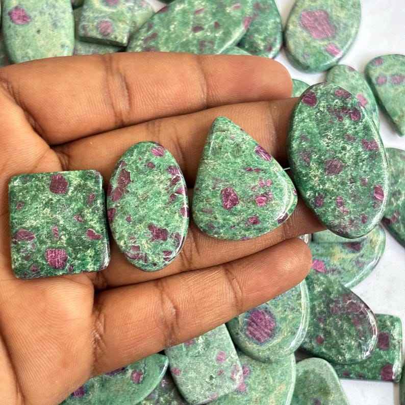 พลอยทับทิม zoisite สีเขียวธรรมชาติทรงผสมอัญมณีหลังแบนราบฟรีไซส์สำหรับทำสร้อยคอเครื่องประดับทำมือ