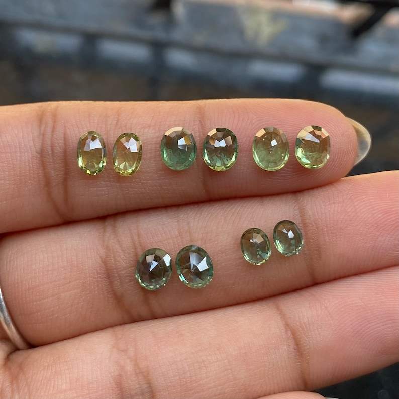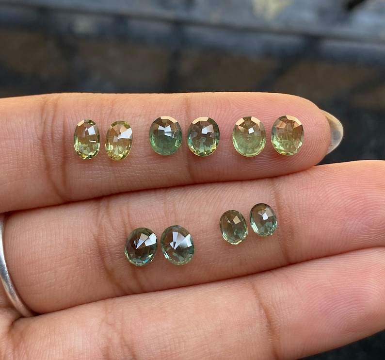 แซฟไฟร์สีเขียวธรรมชาติทรงรีคู่ | โอเอ็ม เจ็มส์ | ต้นกำเนิด TZ | ทุกขนาด | สำหรับแหวนแต่งงาน