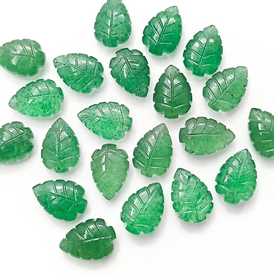 อัญมณีทรงใบควอตซ์แกะสลักรูปทรงใบสตรอเบอร์รี่สีเขียวธรรมชาติ