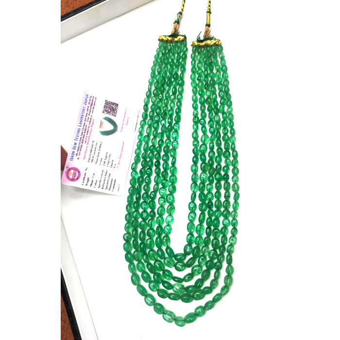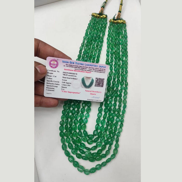 สร้อยคอลูกปัดหินสตรอเบอร์รี่สีเขียวธรรมชาติขนาด6-8มม. ยาว6-8มม. สร้อยคอวินเทจลูกปัด6ชั้น