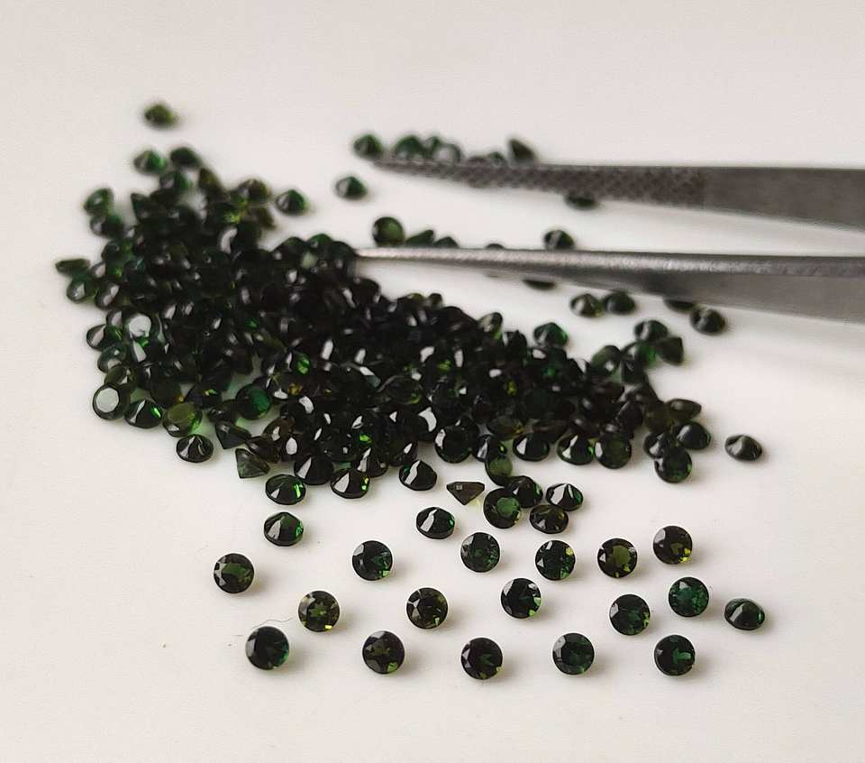 พลอยอัญมณีหลวมสีเขียวทัวร์มาลีนธรรมชาติขนาด1.5มม.-7มม. สำหรับทำเครื่องประดับ