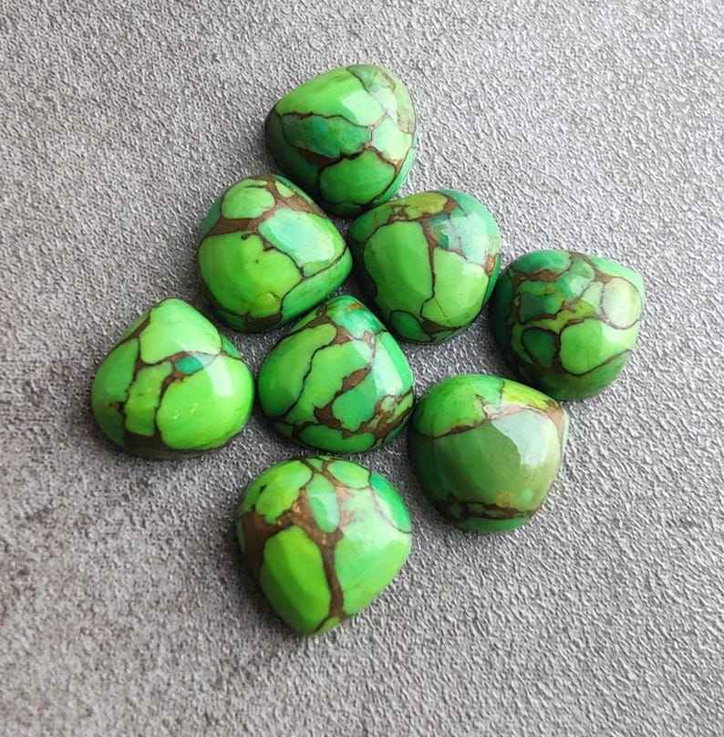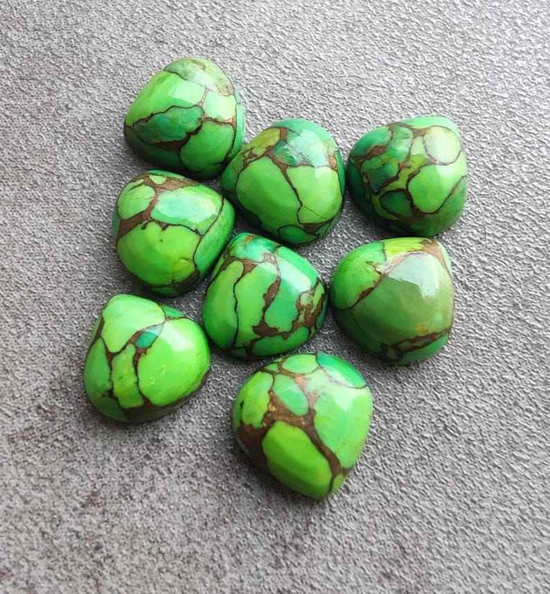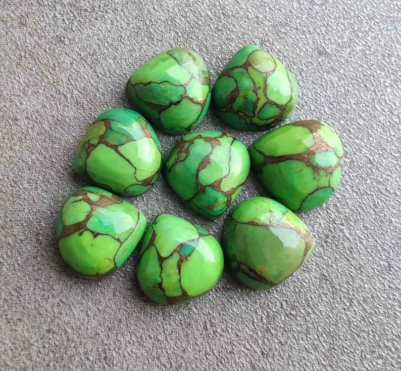 พลอยเทอร์ควอยซ์สีเขียวธรรมชาติทรงหัวใจแบบคาโบชอง ขนาดปรับเทียบแล้ว สำหรับทำเครื่องประดับ พลอยหลวม คริสตัลบำบัด