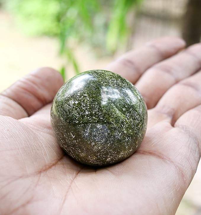 หินทรงกลมผลึกวิสาขบูชาสีเขียวธรรมชาติหินทรงกลมเคลือบเงาบำบัด-หินคริสตัลวิจิตร-หินบำบัดจำนวนมาก