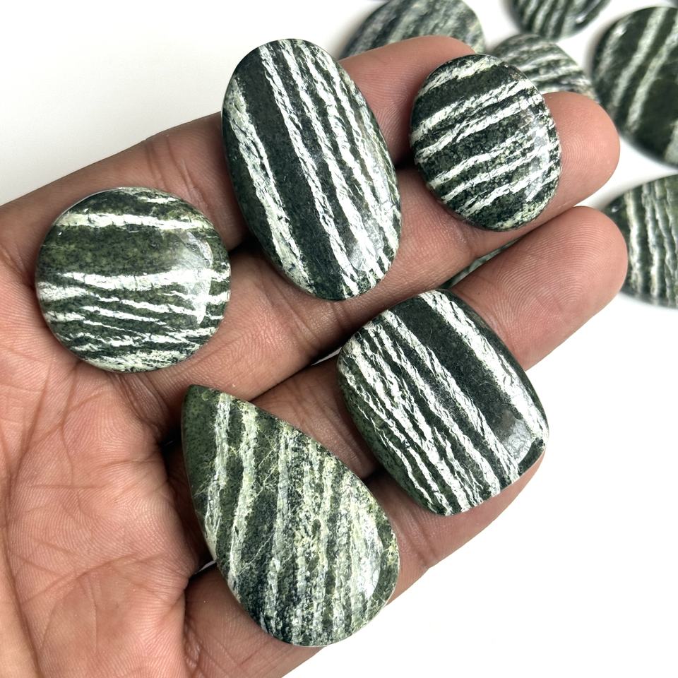 Natural Green Zebra Jasper Cabochon Polished Loose Gemstone Oval Pear And Freeform Shape Designer Stone For Jewelry Making