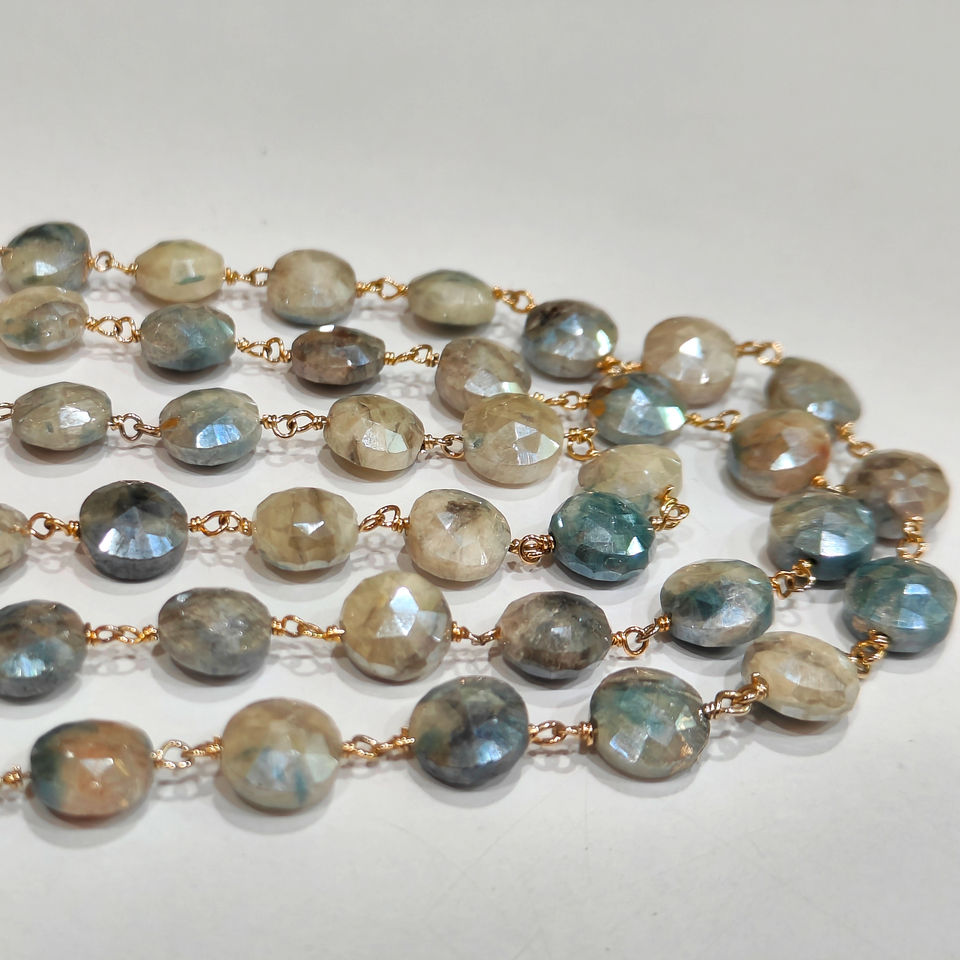 ลูกปัดมูนสโตนทรงกลมเหลี่ยมเพชรพลอย ขนาด 9 มม. ชุบทอง 10K สีบรอนซ์ธรรมชาติ สำหรับทำเครื่องประดับ ขายเป็นฟุต