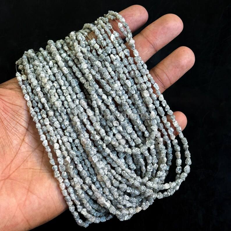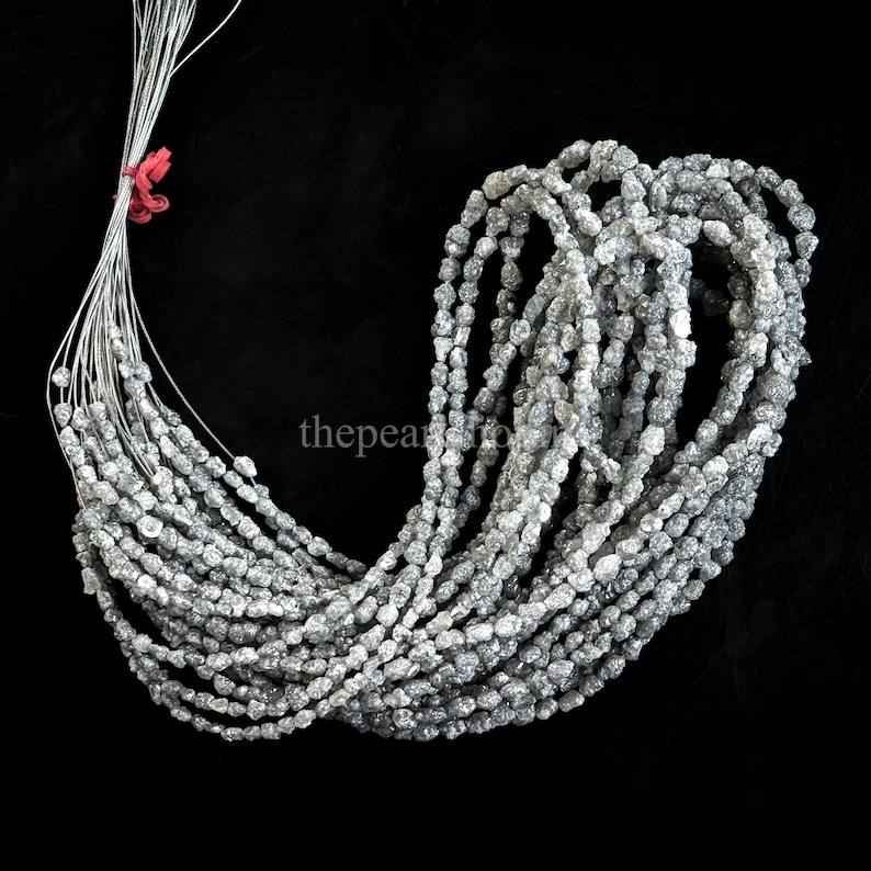 ลูกปัดเพชรดิบสีเทาธรรมชาติ ขนาด 4x3-6x4 มม. แบบไม่เจียระไน รูตรง สำหรับทำเครื่องประดับ ความยาว 16 นิ้ว