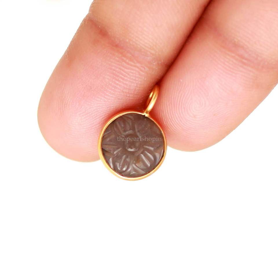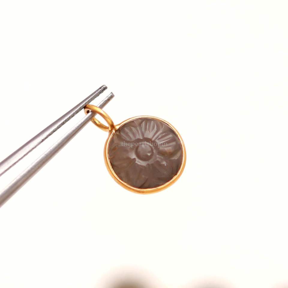 Natural Grey Moonstone Round Shape Flower Carved Gemstone Pendant