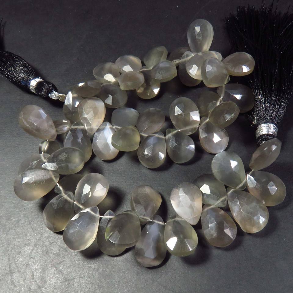 ลูกปัดลูกแพร์ทรงเหลี่ยมเพชรพลอยมูนสโตนสีเกรย์ธรรมชาติขนาด8-12มม. ขายส่งจำนวนมากในราคาโรงงาน