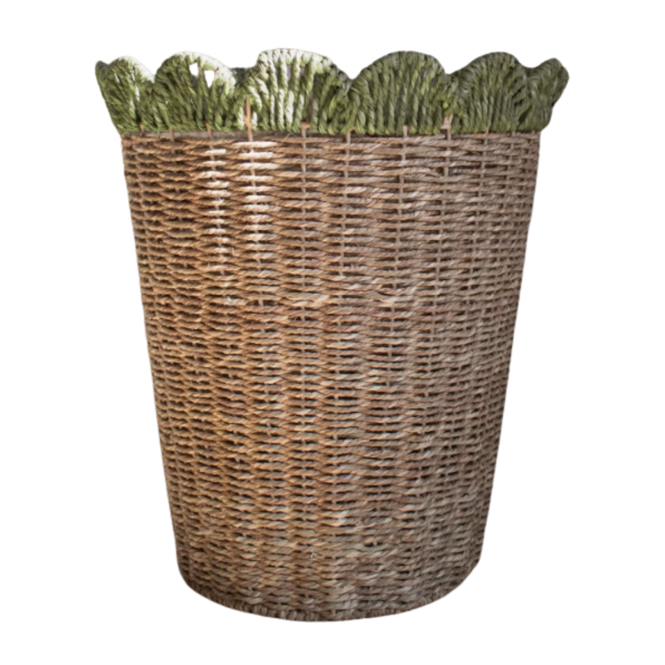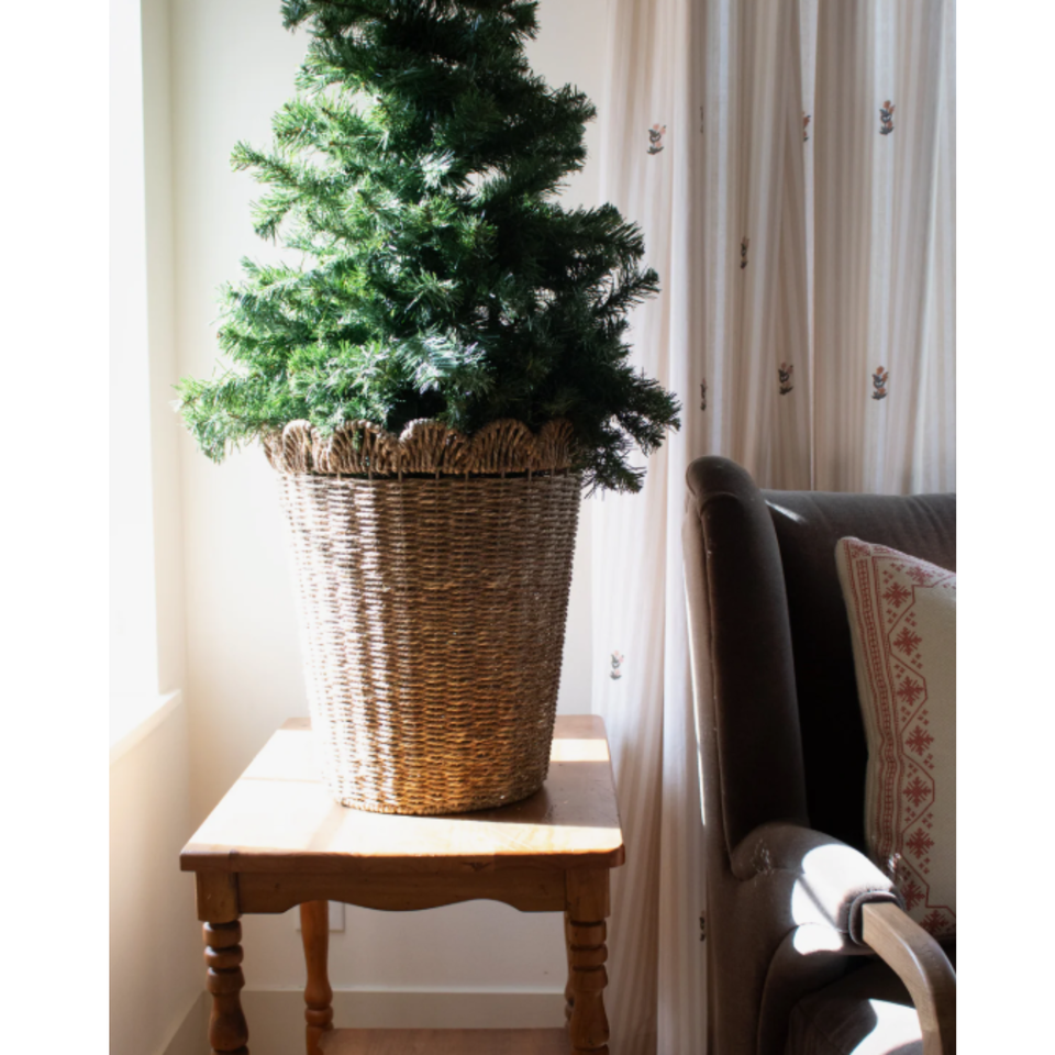 กระเช้าหวายสานมือลายหยักธรรมชาติสำหรับปลูกต้นไม้และดอกไม้ กระเช้าหวายตกแต่งบ้านจากเวียดนาม