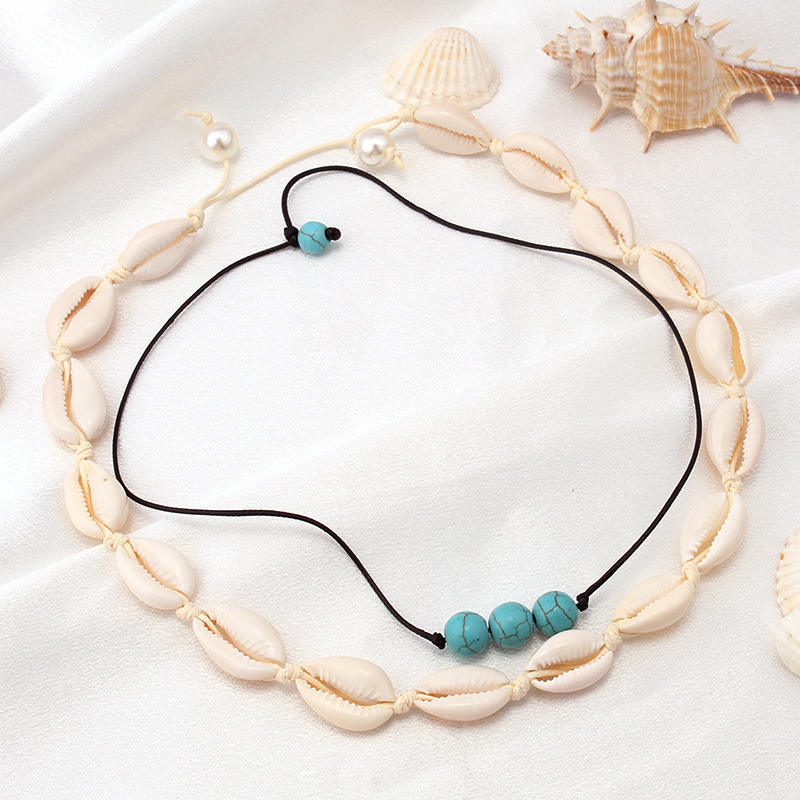 สร้อยคอเปลือกหอยทอมือธรรมชาติ สร้อยลูกปัด สไตล์ชาติพันธุ์ เครื่องประดับชายหาด แฟชั่นดีไซน์เรียบง่าย